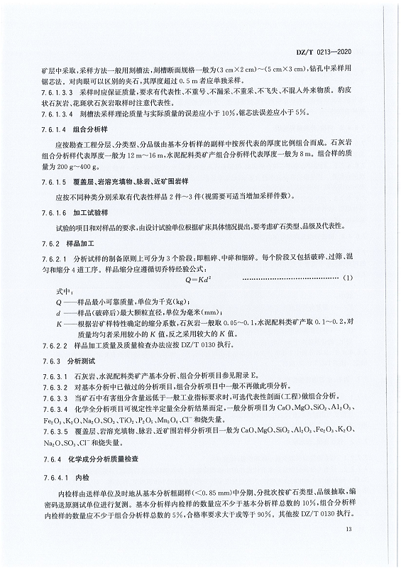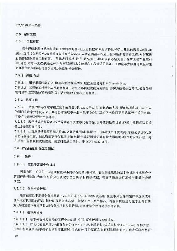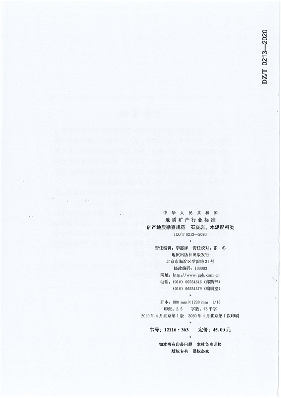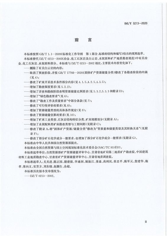DZ T 0213-2020 矿产地质勘查规范 石灰岩、水泥配料类