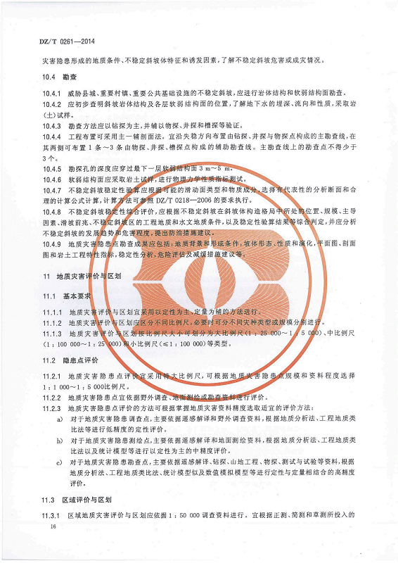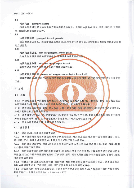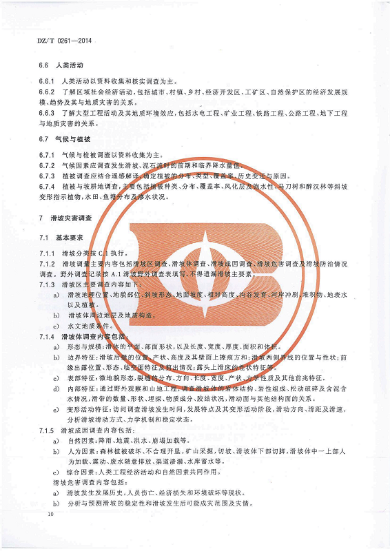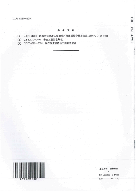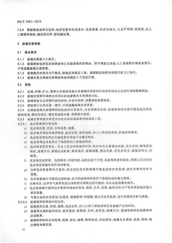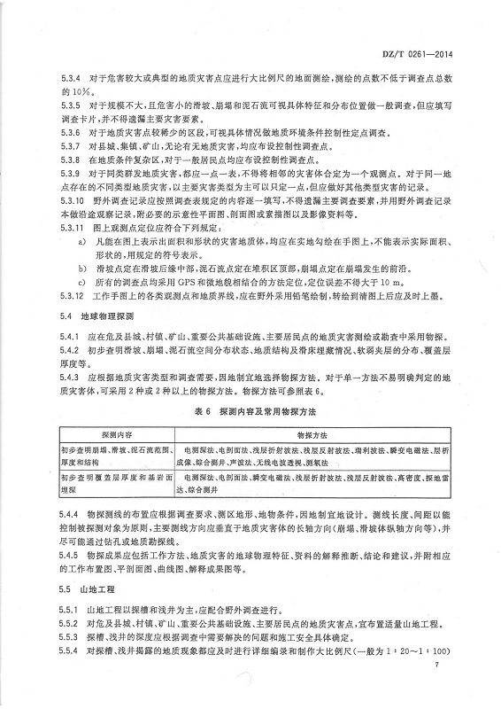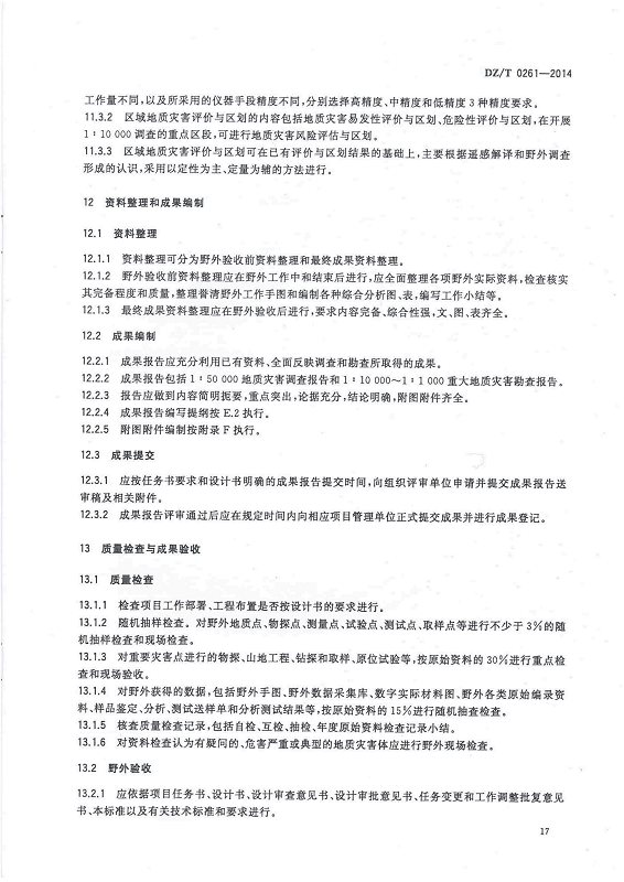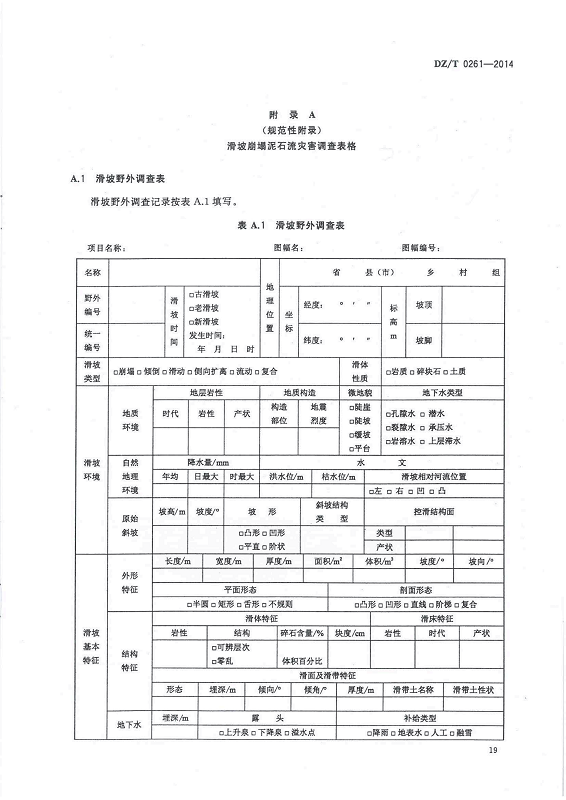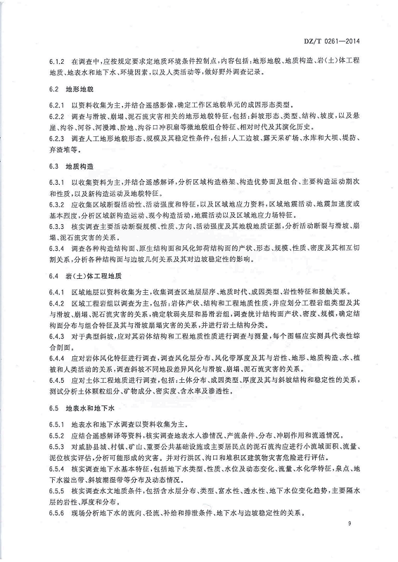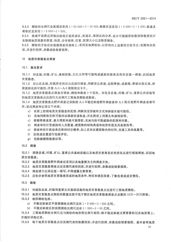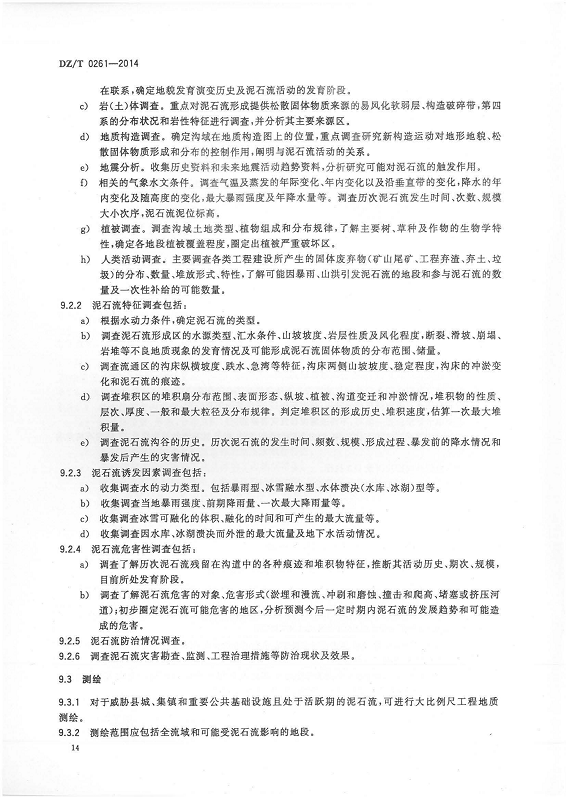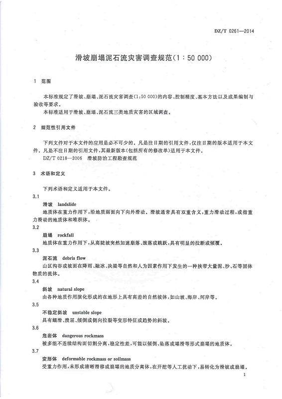 DZ T 0261-2014 滑坡崩塌泥石流灾害调查规范(1:50000)