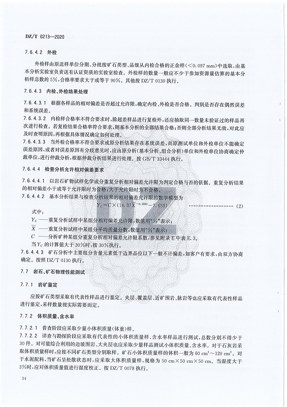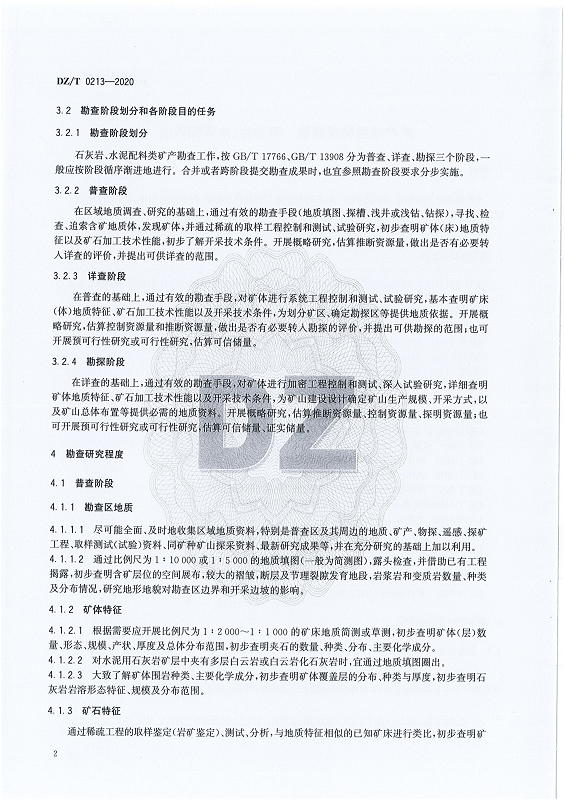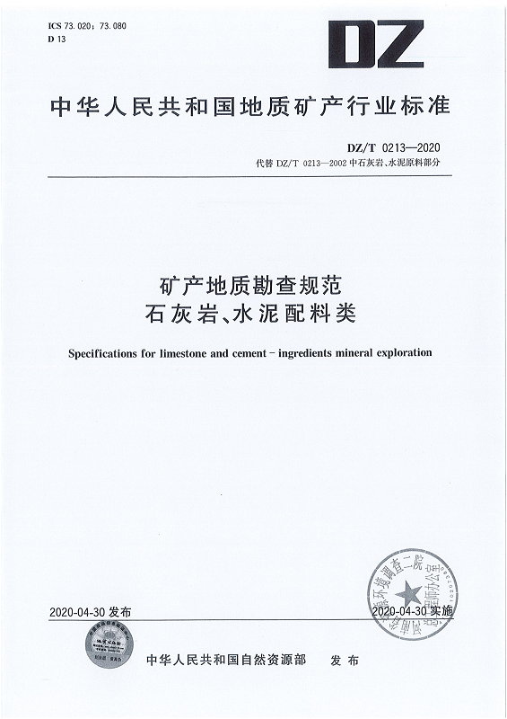 DZ T 0213-2020 矿产地质勘查规范 石灰岩、水泥配料类