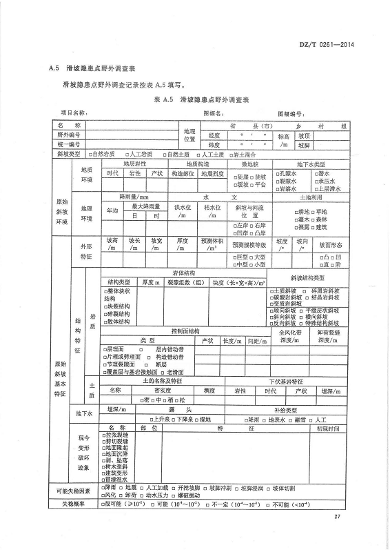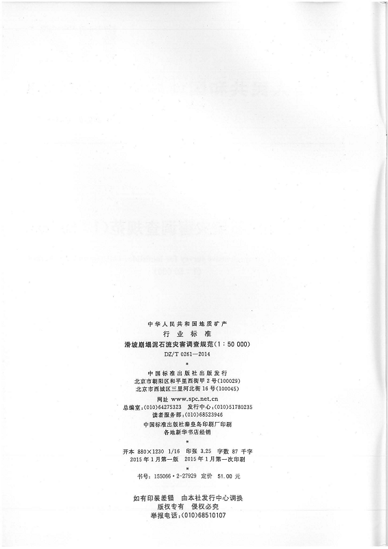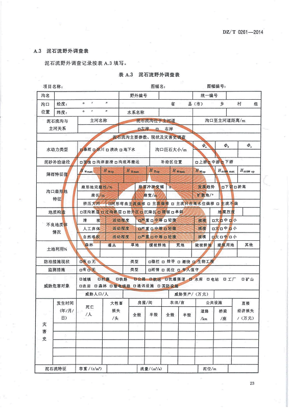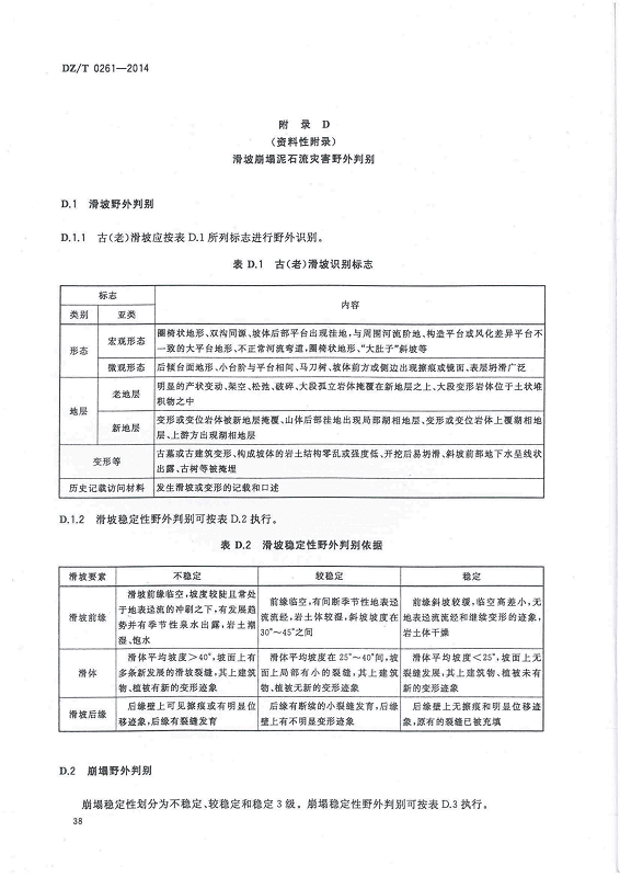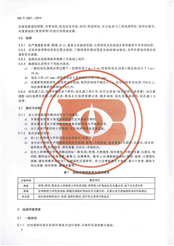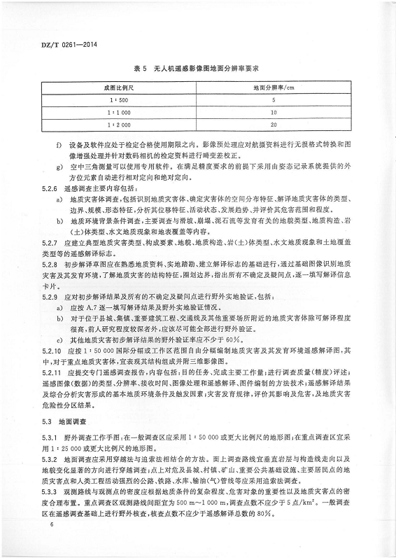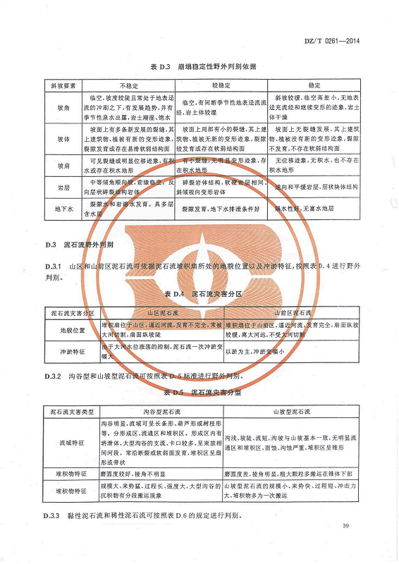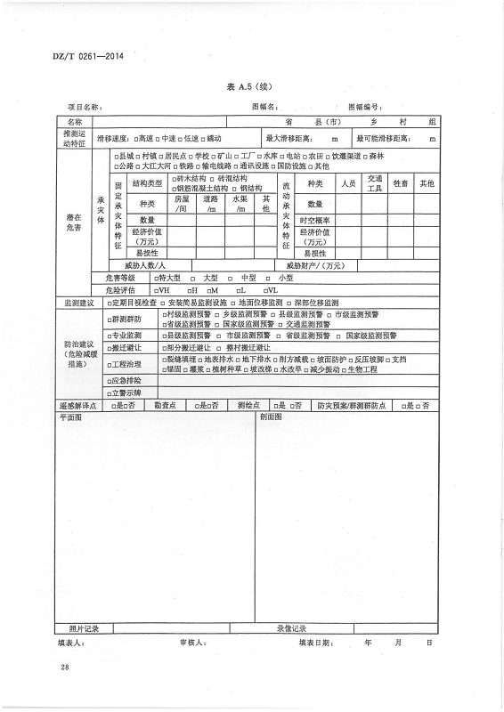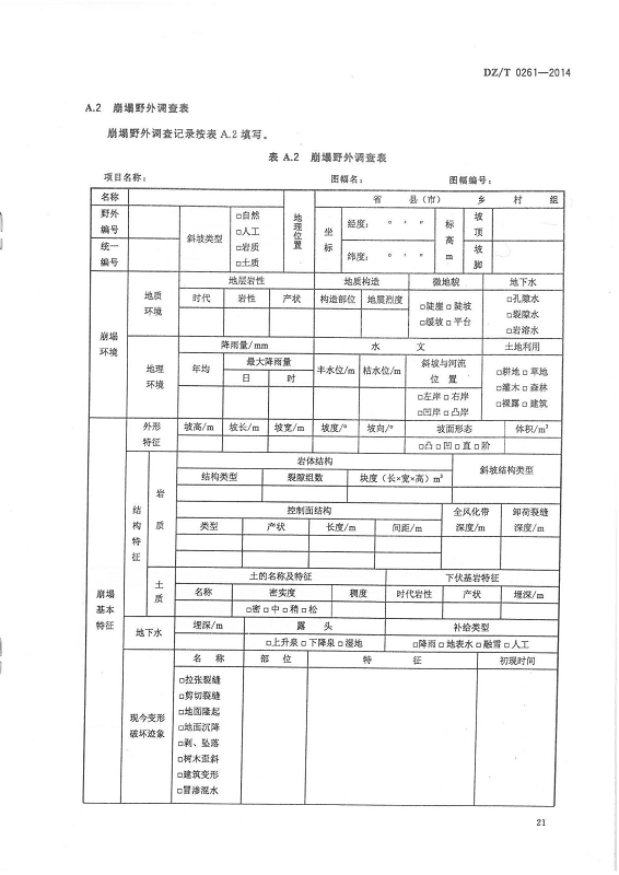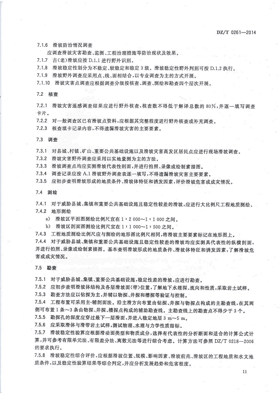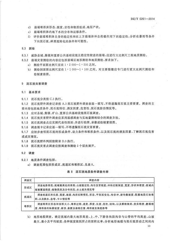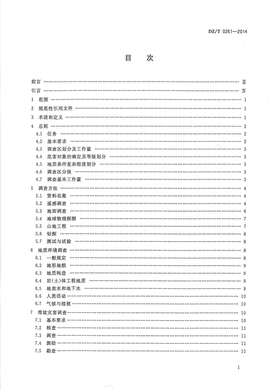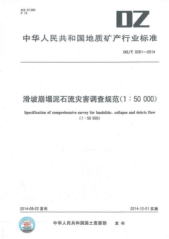 DZ T 0261-2014 滑坡崩塌泥石流灾害调查规范(1:50000)